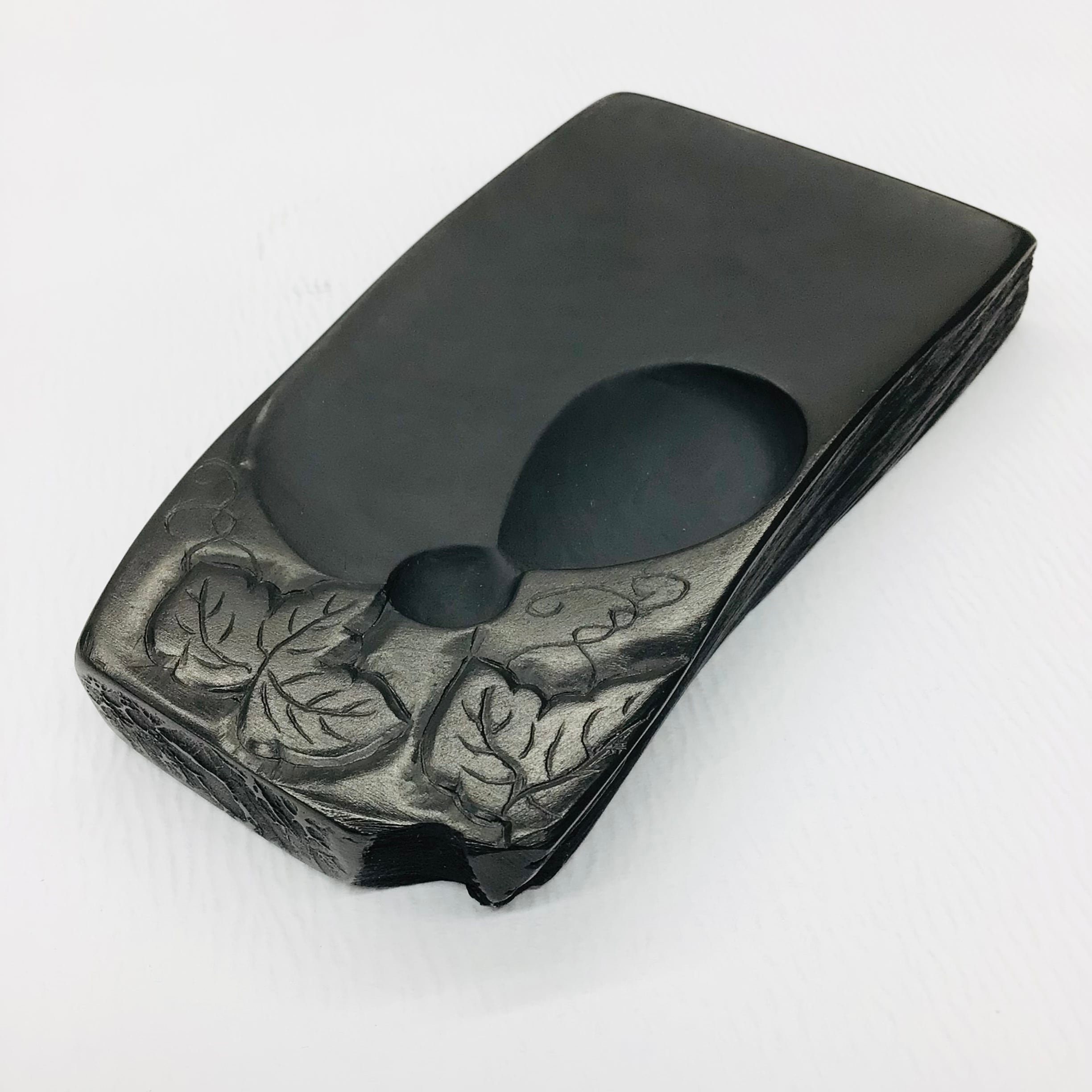 粘板岩が薄紙を重ねたように層をなしていますので、墨おり、発墨に優れています